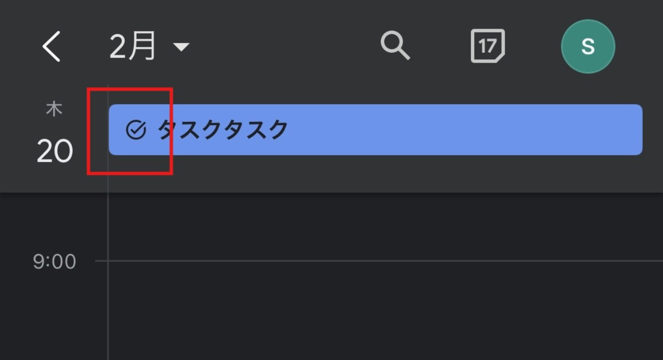 タスクを作成すると、チェックマークのアイコンが表示され、他の予定かタスクか見分けるのに便利です。