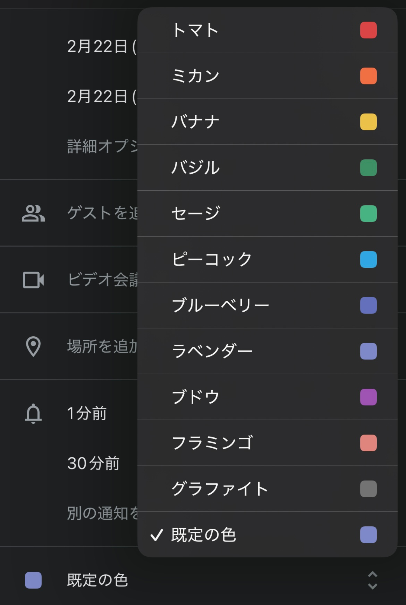 さらに細かく設定する場合は、予定を作成する際に、1つ1つ色を変更します。