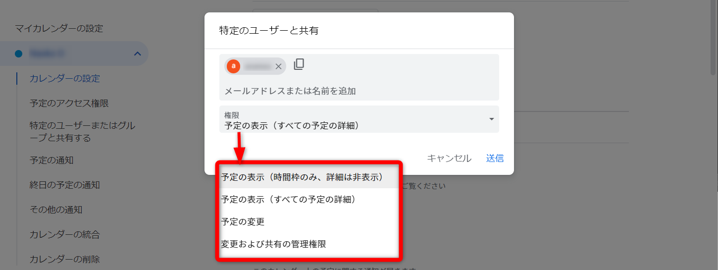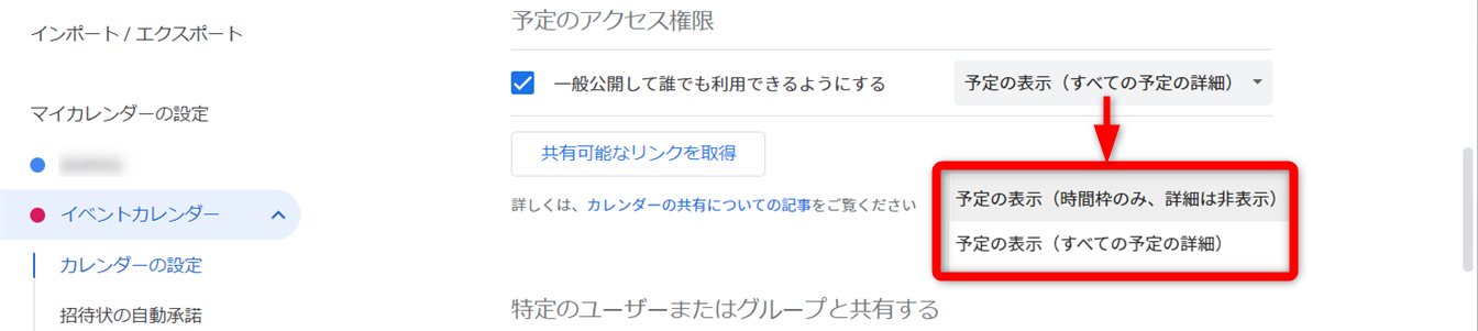 カレンダーの共有先を限定する場合の設定です。
