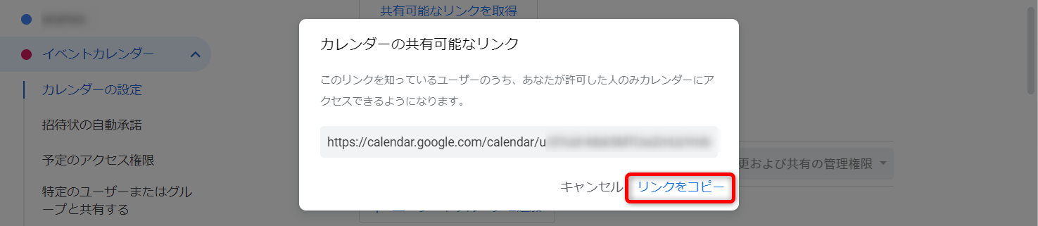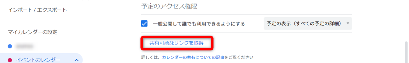 リンクを知っている人ならだれでもカレンダーが見られる状態にする方法です。