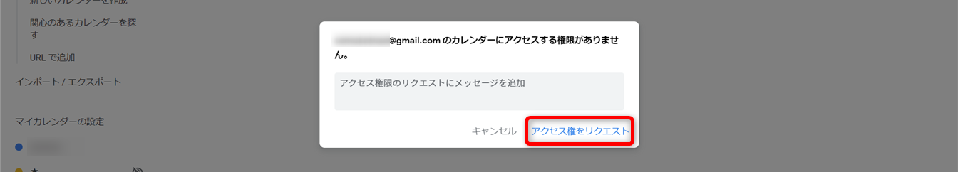 自分にアクセス権がないと「●●のカレンダーにアクセスする権限がありません。」と表示されます。