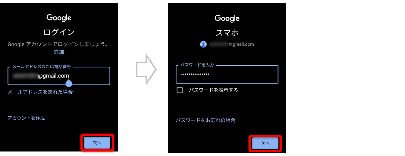 ※iPhoneの場合は画面の指示に従ってGoogleアカウントにログインしてください。