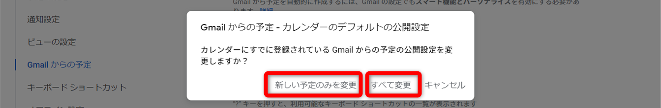 標準設定では、Gmail からカレンダーに自動的に追加された予定は「自分にのみ表示」されるようになっているため、他のアカウントには公開されません。