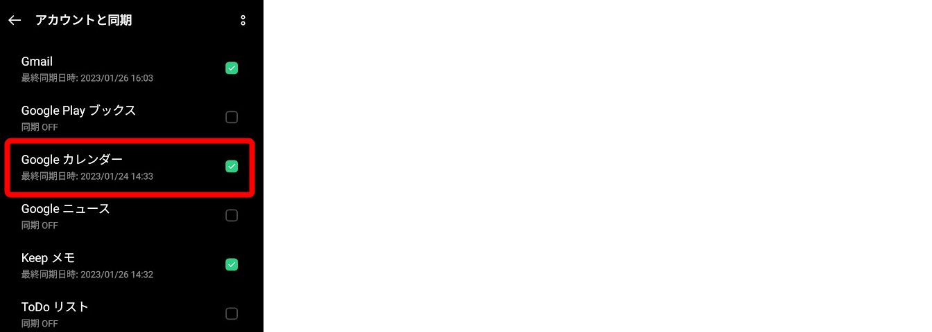 再度「Googleカレンダーアプリ」を開いて同期できたか確認してください。