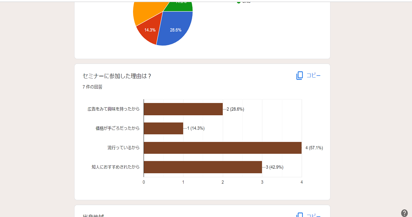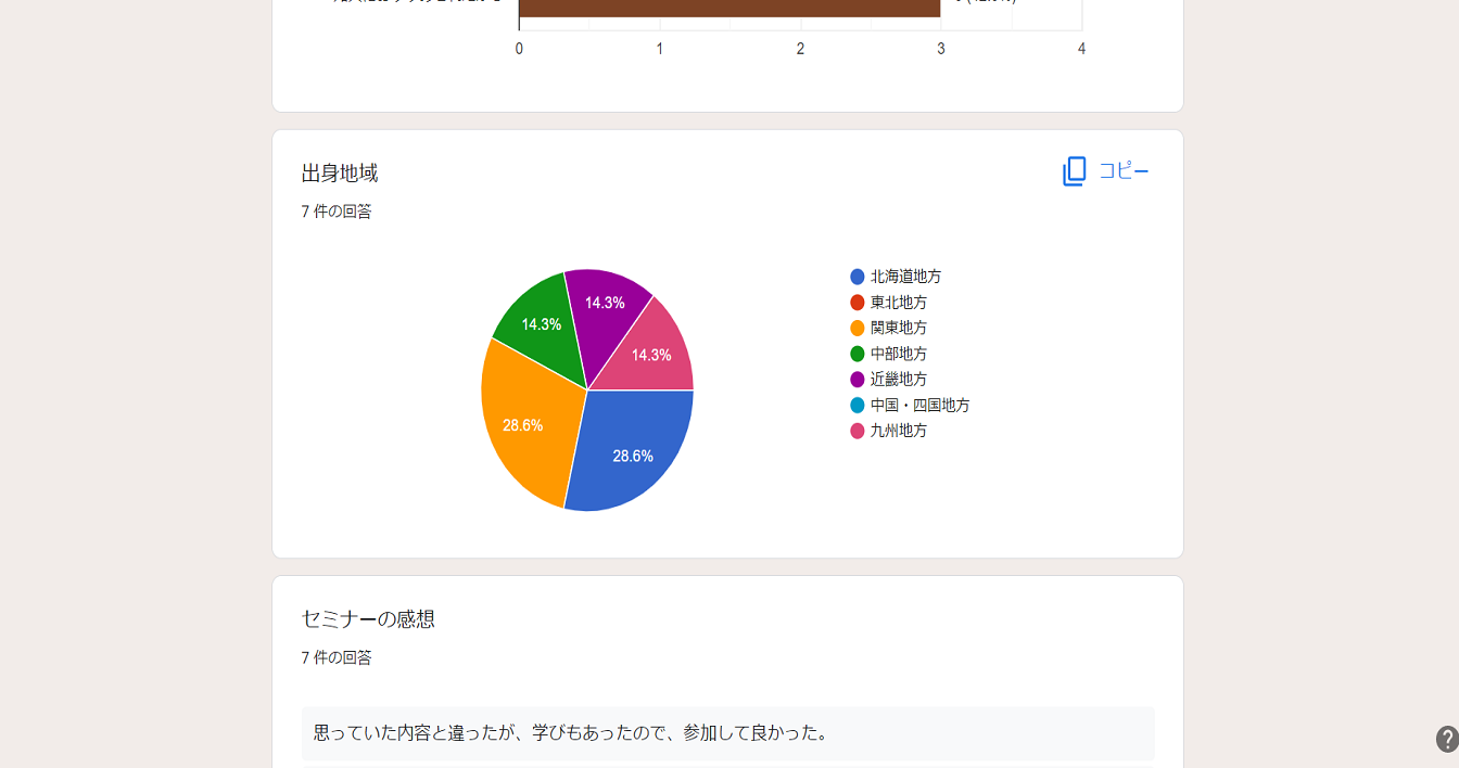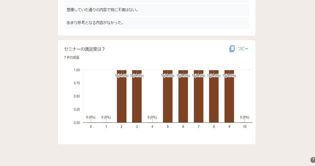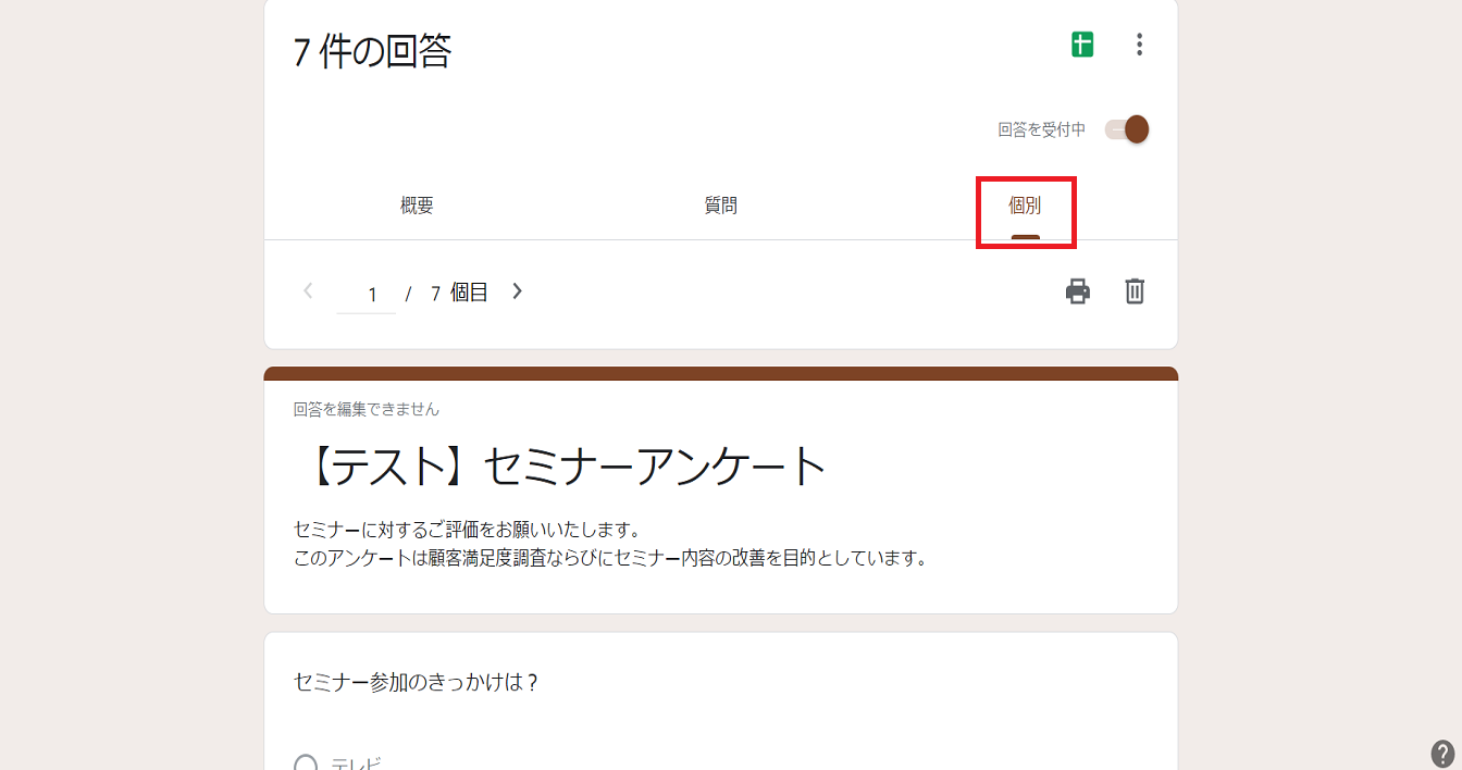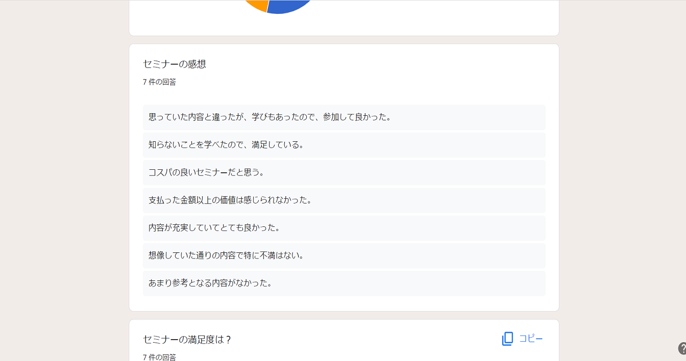 今回は例としてセミナーアンケートというフォームの回答結果の確認をおこないます。