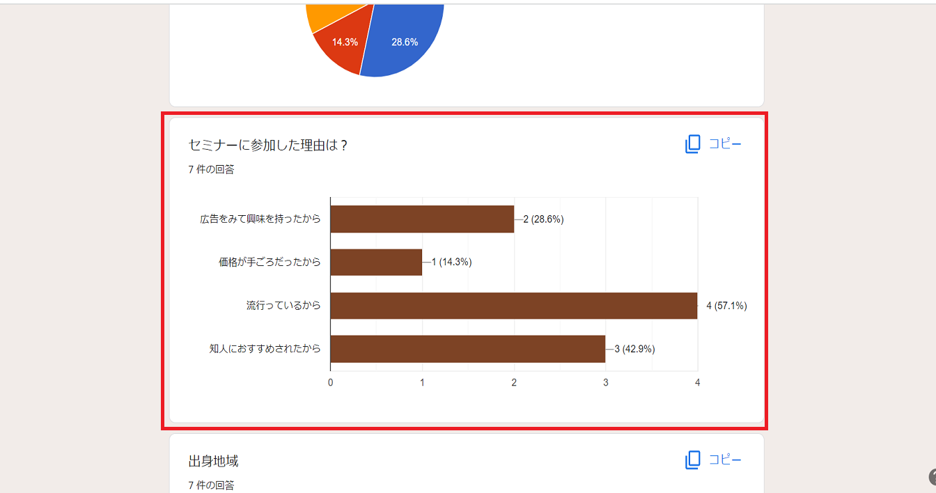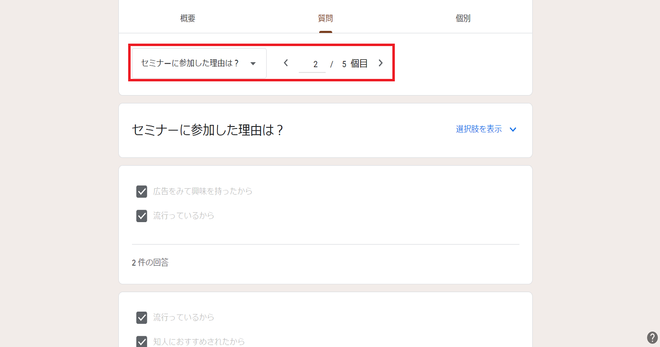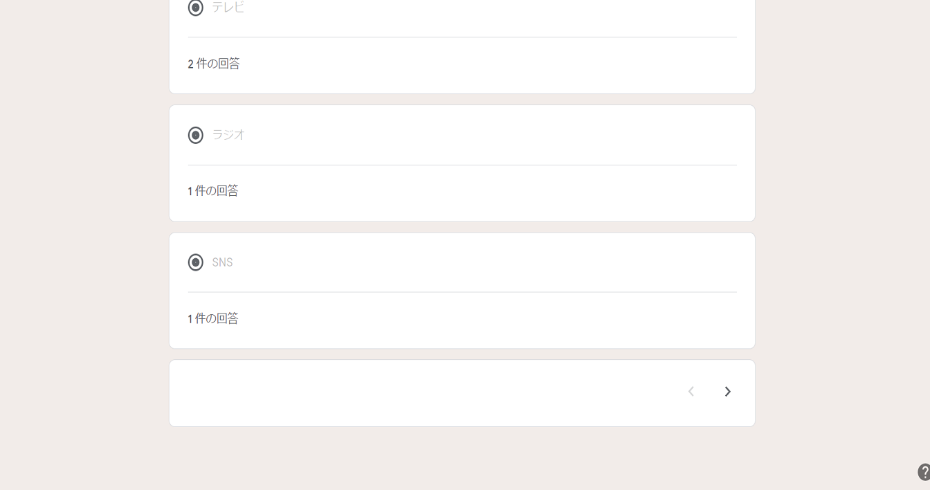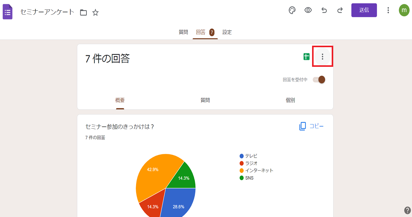 回答の隣にある数字が、現在フォームに回答が届いている数になります。