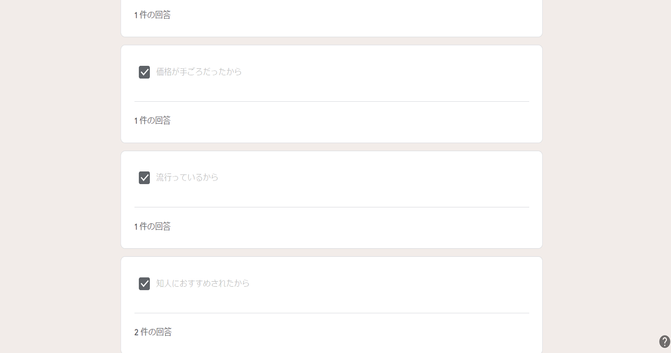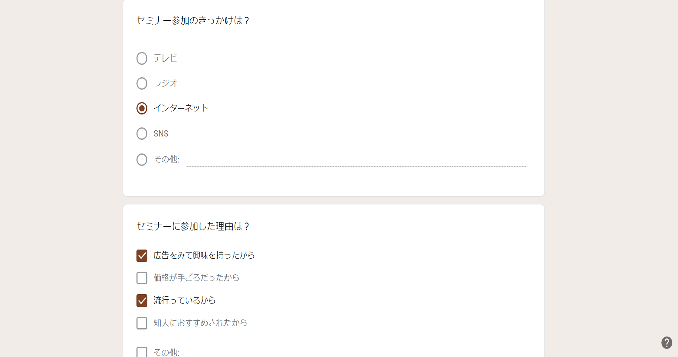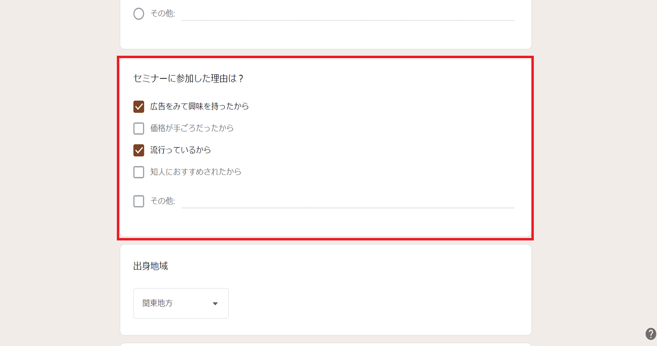 質問形式がチェックボックスであれば、回答者は複数の回答を選択することができます。