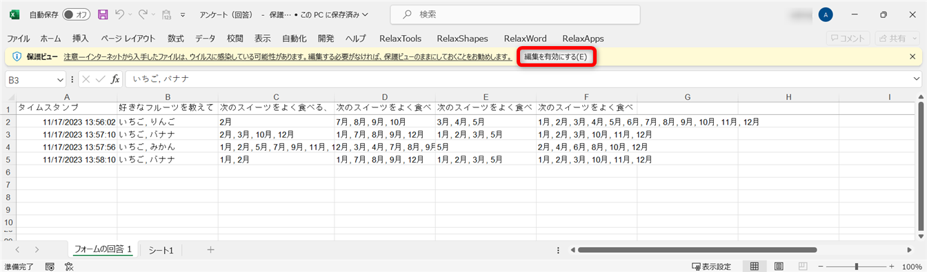 普段Excelを使っている方は、「Googleフォームでアンケートを作成→Googleスプレッドシートに収集→Excelで集計」してもよいでしょう。