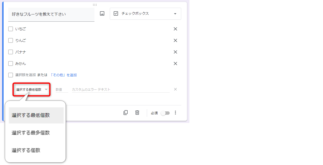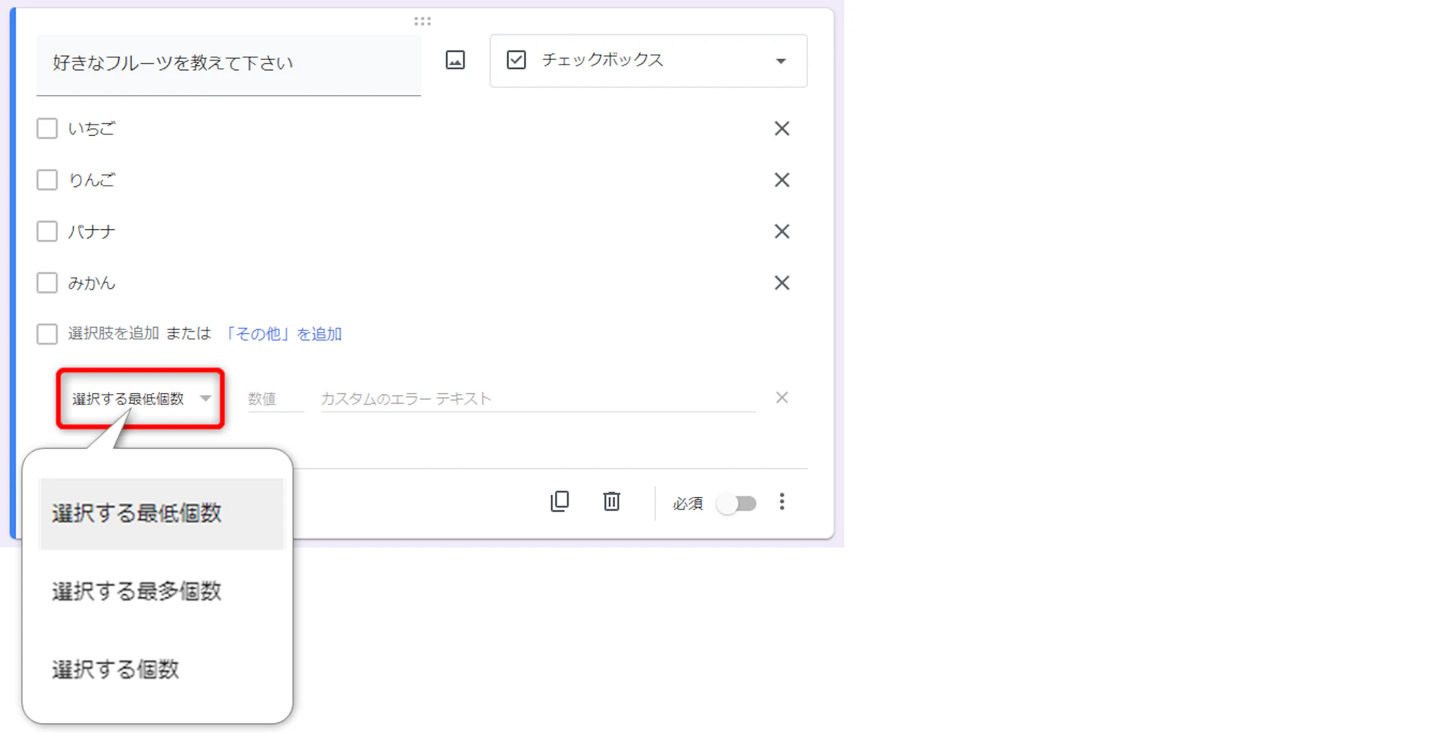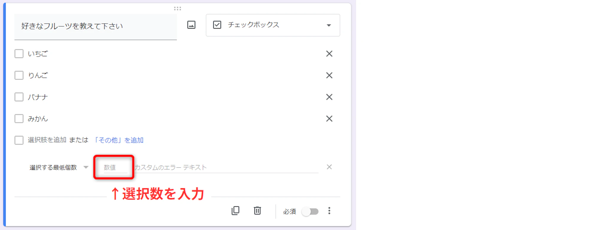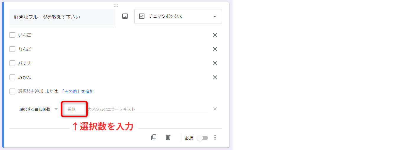 選択する数を制限したい場合は、選択数設定をしましょう。