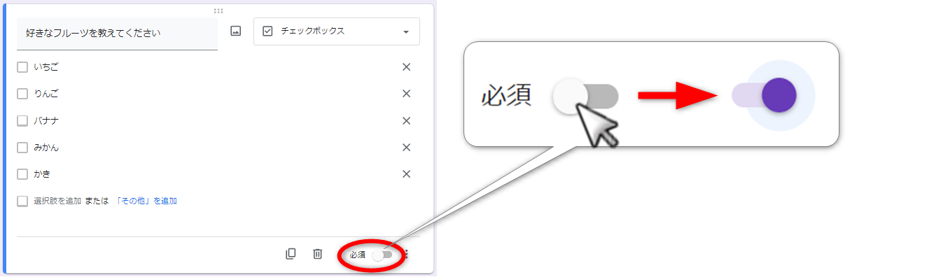 再びクリックすると、スイッチがグレーになり必須がオフになります。
