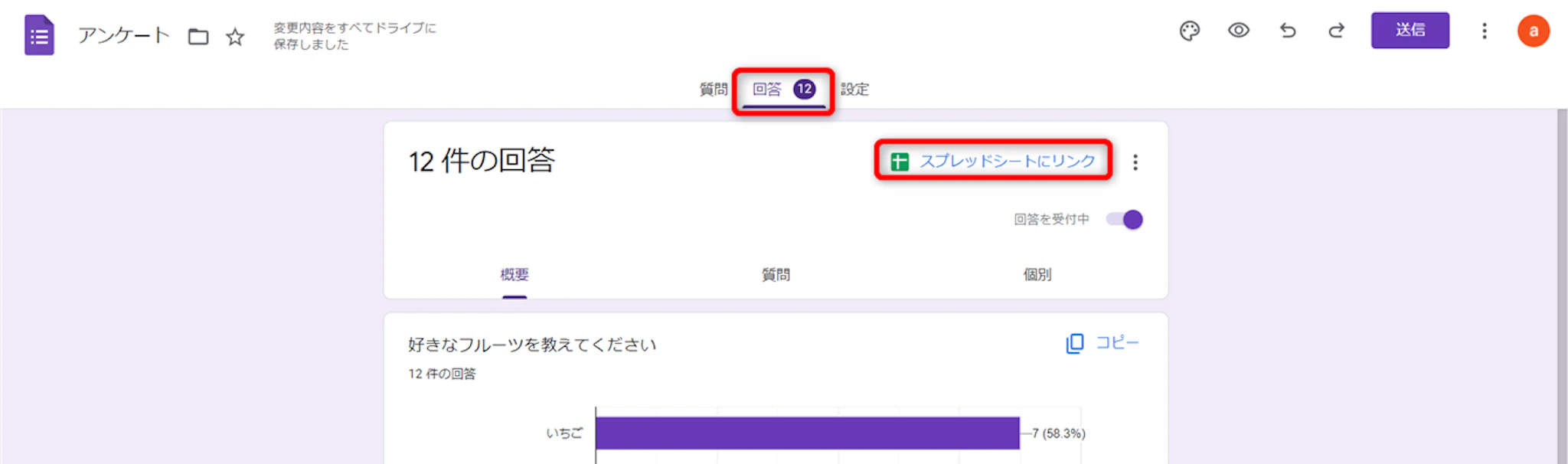 Googleフォームの集計データは、Googleスプレッドシートに自動連携できます。