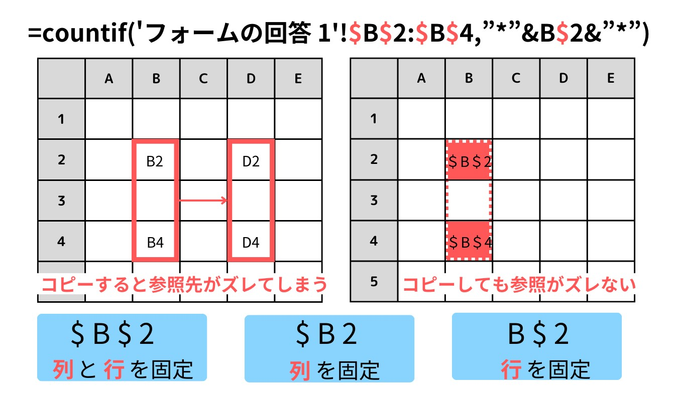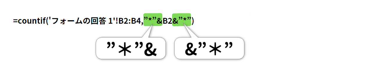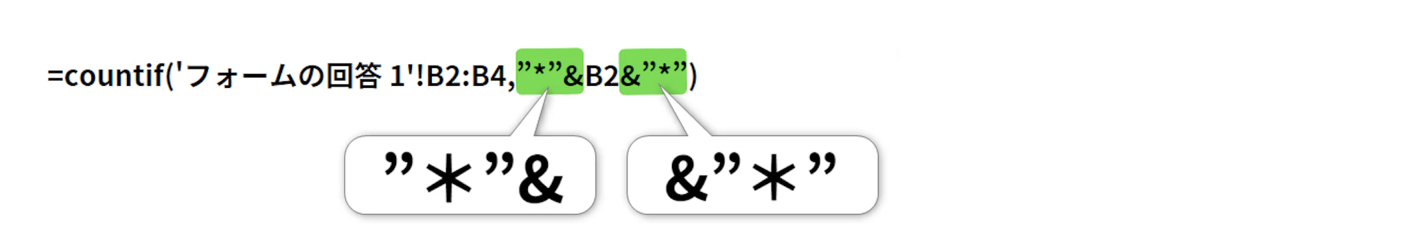 =countif('フォームの回答 1'!B2:B4,”*”&B2&”*”)