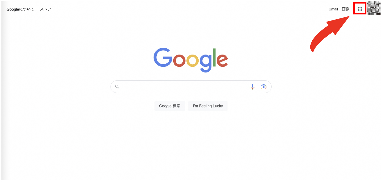 まず、Googleアカウントにログインした状態でGoogleのホームページにアクセスします。