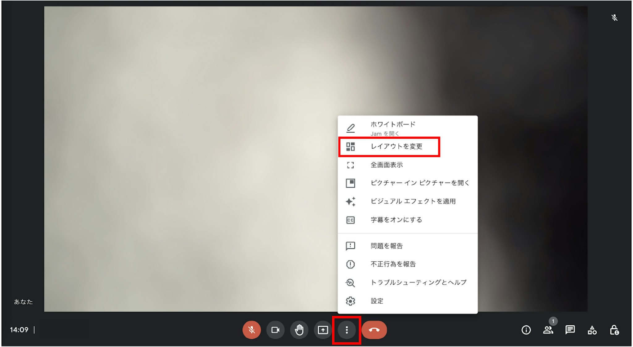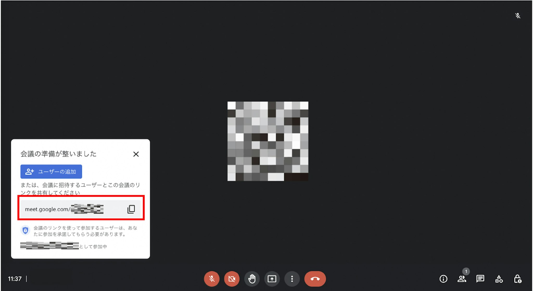 すると、画像のようなGoogle Meetの画面に遷移します。