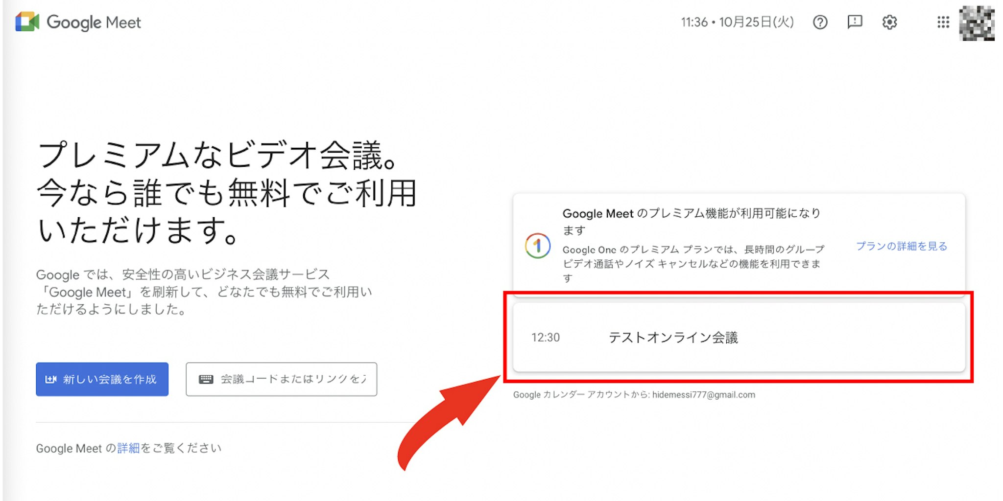 なお、Googleカレンダー上で作成されたオンライン通話予定は画像のようにGoogle Meetのトップ画面に表示されます。