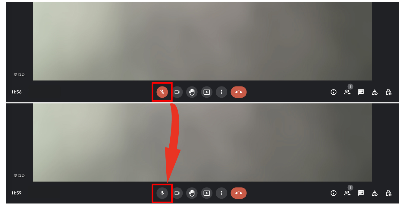 通話マイクのONとOFFは赤色で囲まれた箇所で切り替えができます。赤色で塗りつぶされている時はOFF状態、色がついていない場合はONです。