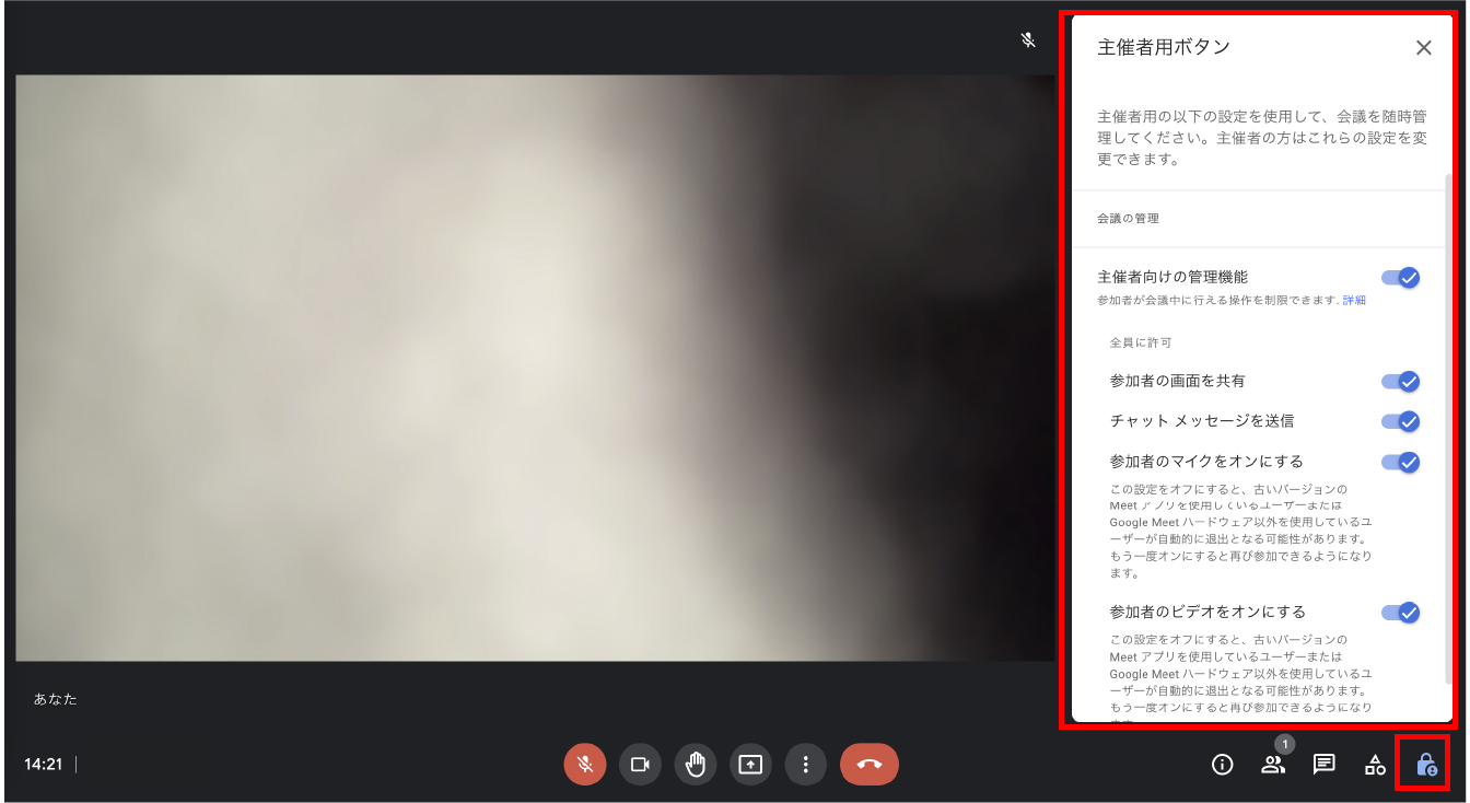 ミーティングを立ち上げたユーザーは参加者に対して次のような権限を付与または、取り消しできます。