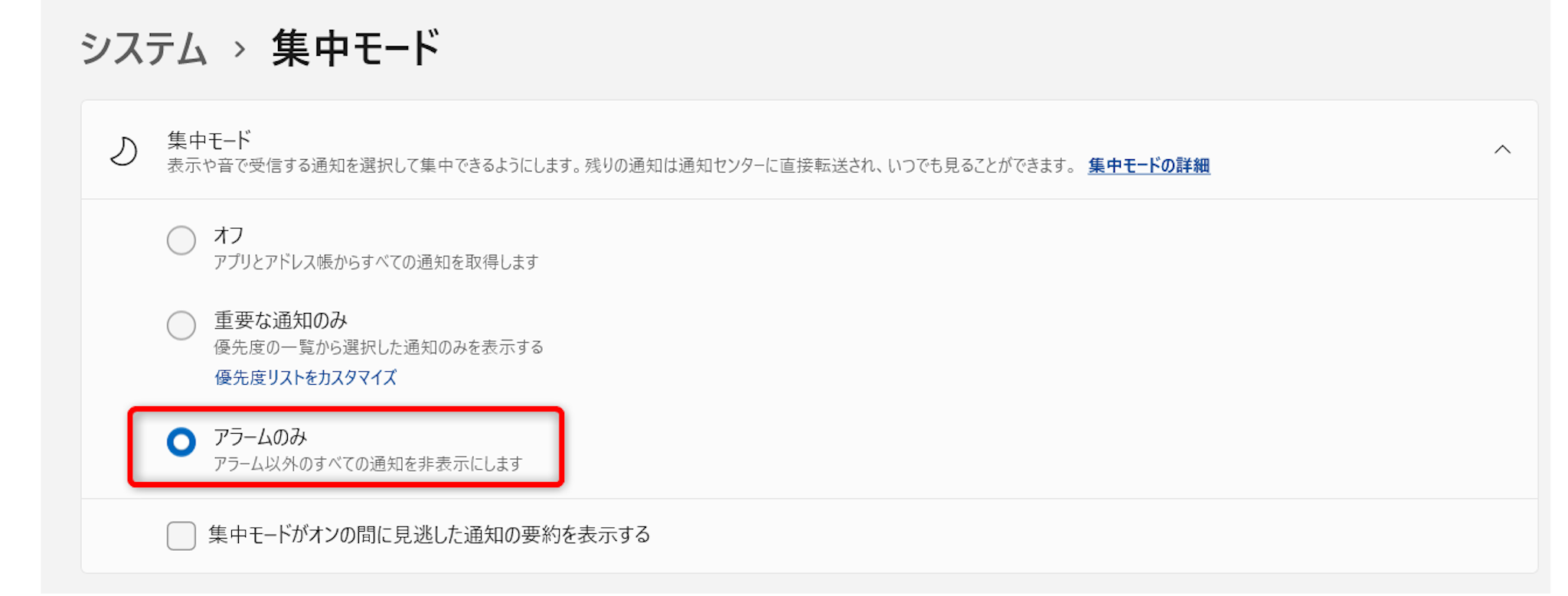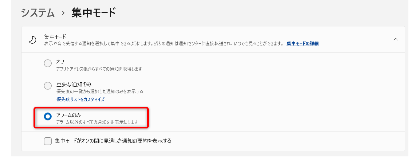 [アラームのみ]にチェックを入れます。