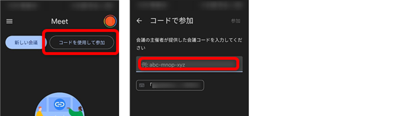 スマホなど別端末でGoogle Meetアプリを起動します。