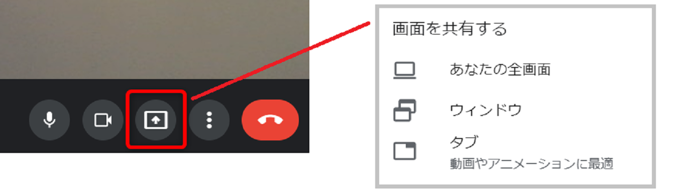Google Meetには画面共有という機能があります。