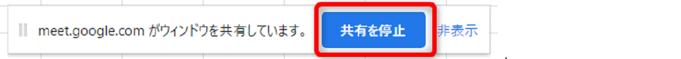 Meetアプリを表示し[共有を停止]をタップすると、共有が解除されます。