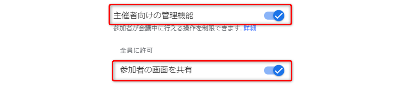 「主催者向けの管理機能ボタン」を[オン]にします。