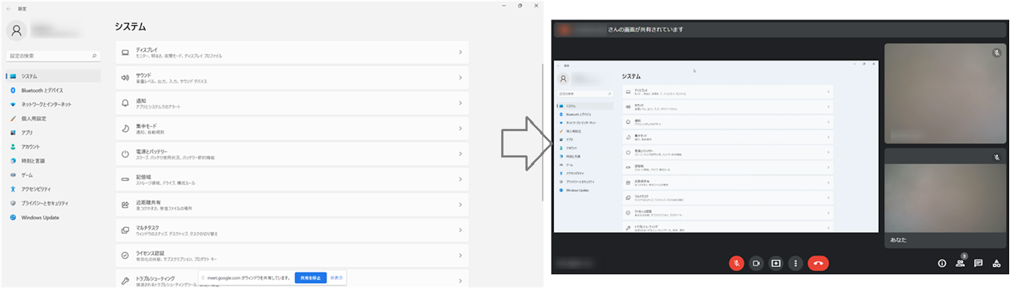 (左)共有している画面 (右)Google Meet画面