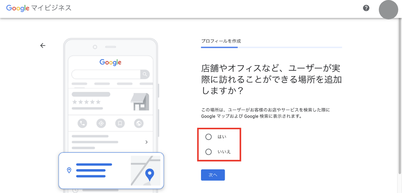 ユーザーが訪れることができる場所を公開する場合は、「はい」を選びます。