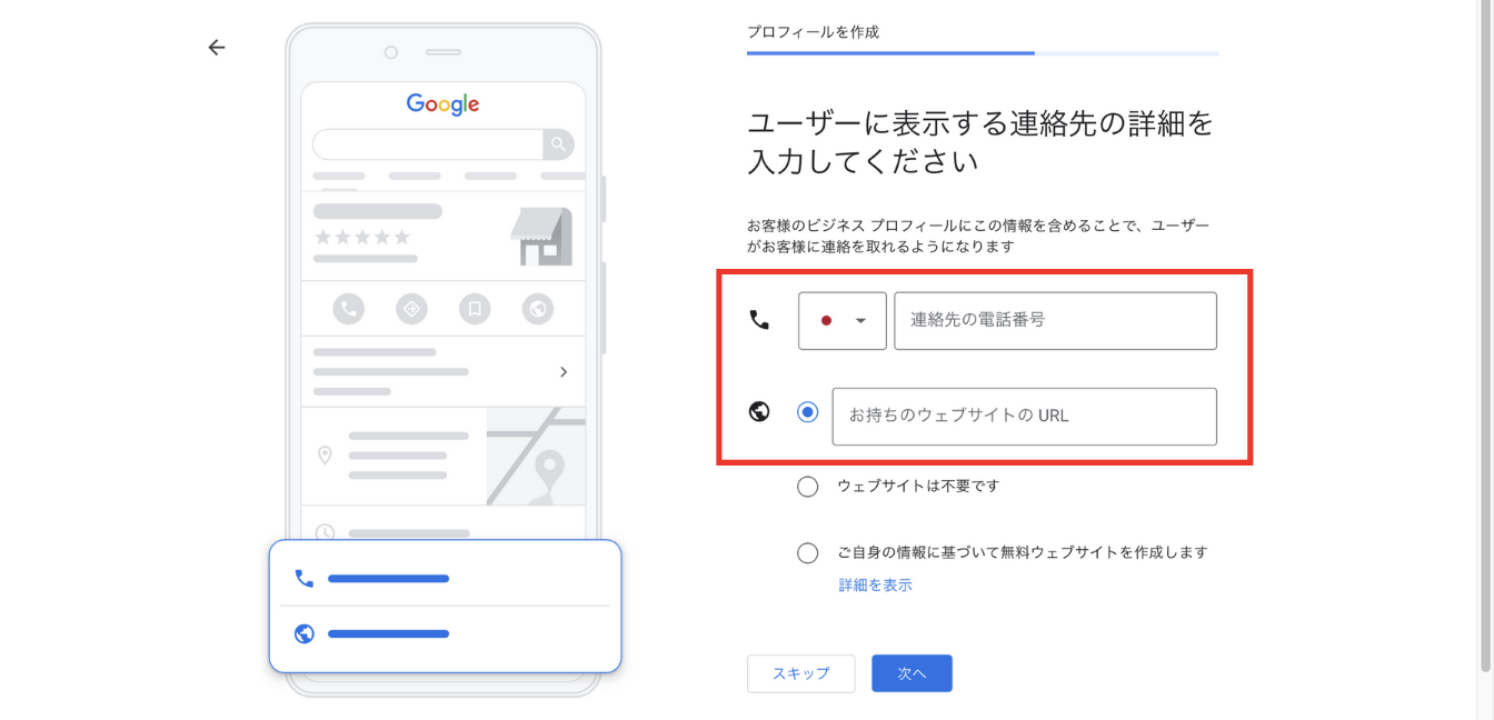 後で入力する人は「スキップ」をクリックして、先に進んでも問題ありません。