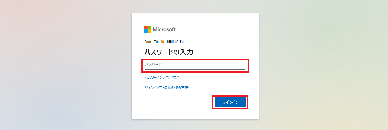 設定したパスワードを入力して「サインイン」を押します。