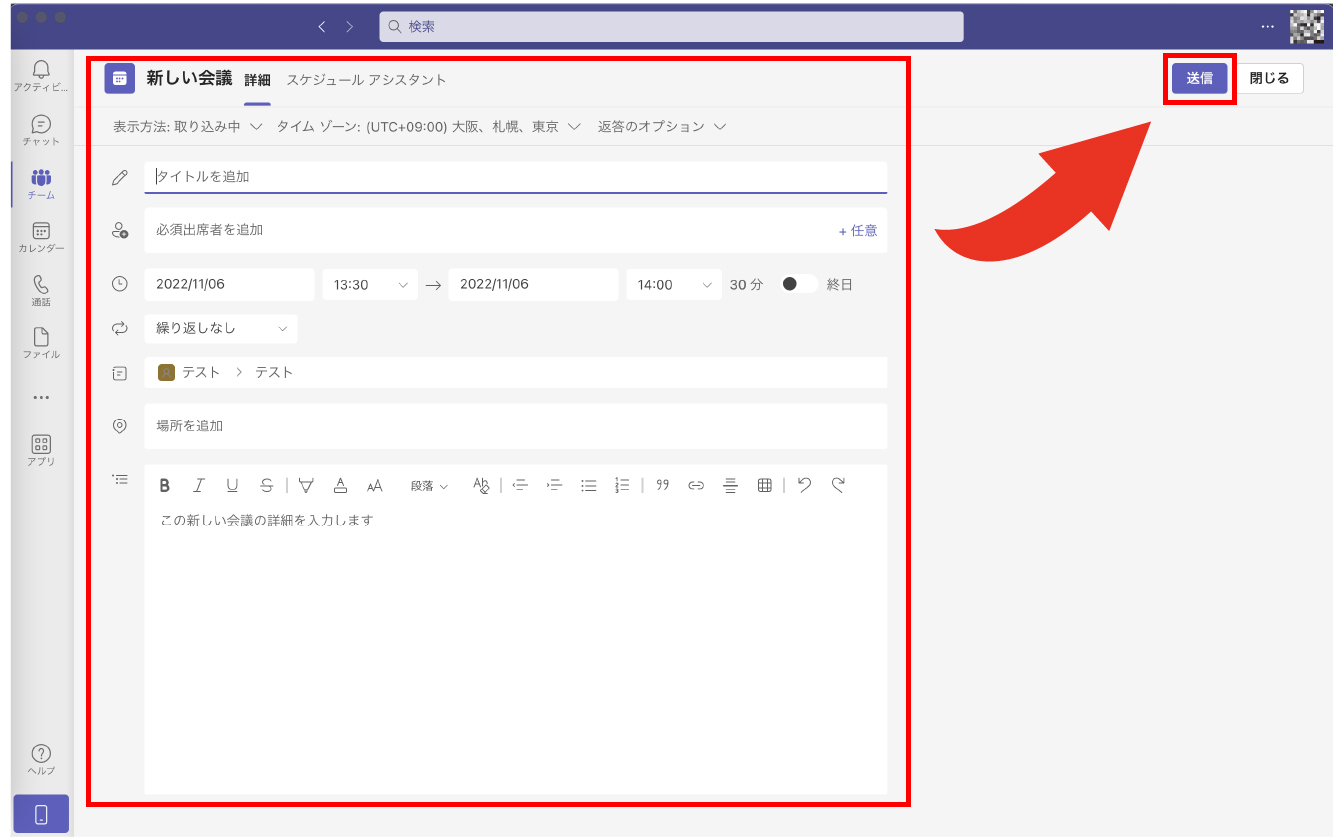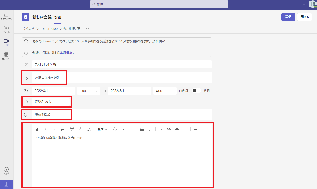 まずは会議を設定します。
