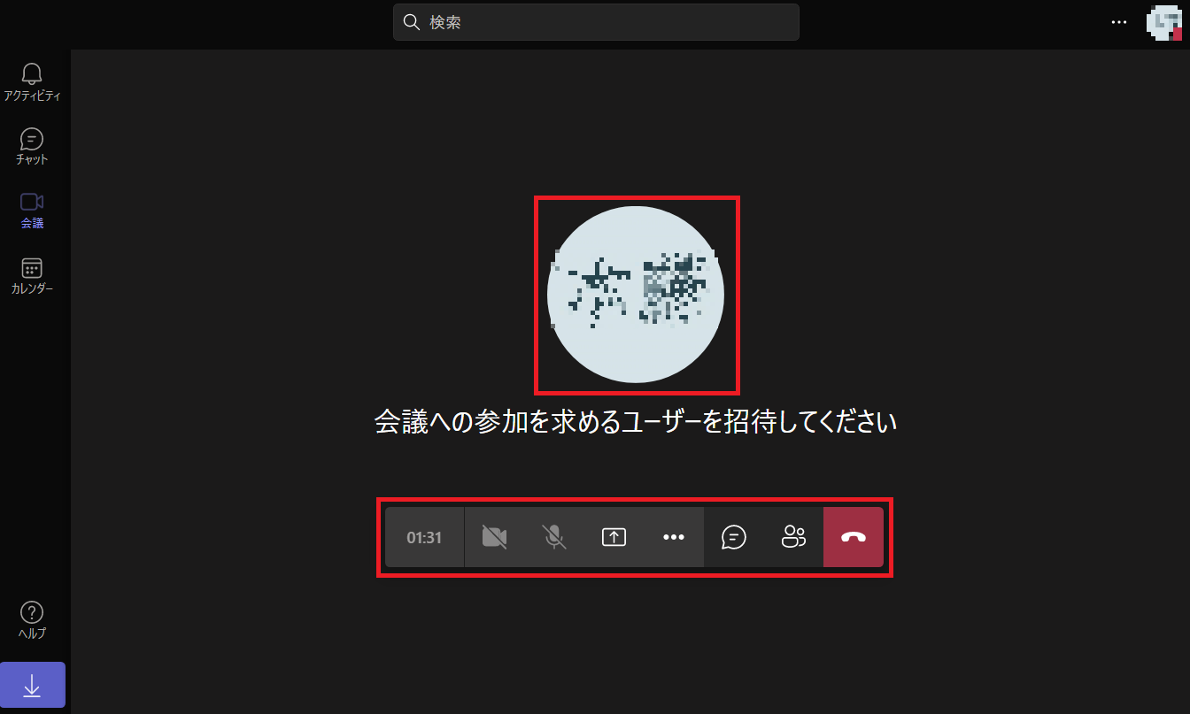 会議に入ると中央に略称アイコンが表示されます。アイコンは画像をアップロードすることで自由に変更可能です。