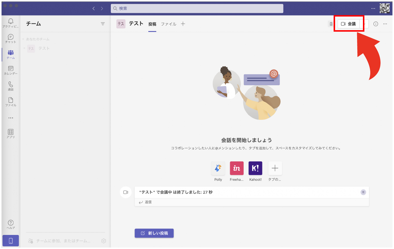 Web会議は左端の「会議」アイコンから開始します。