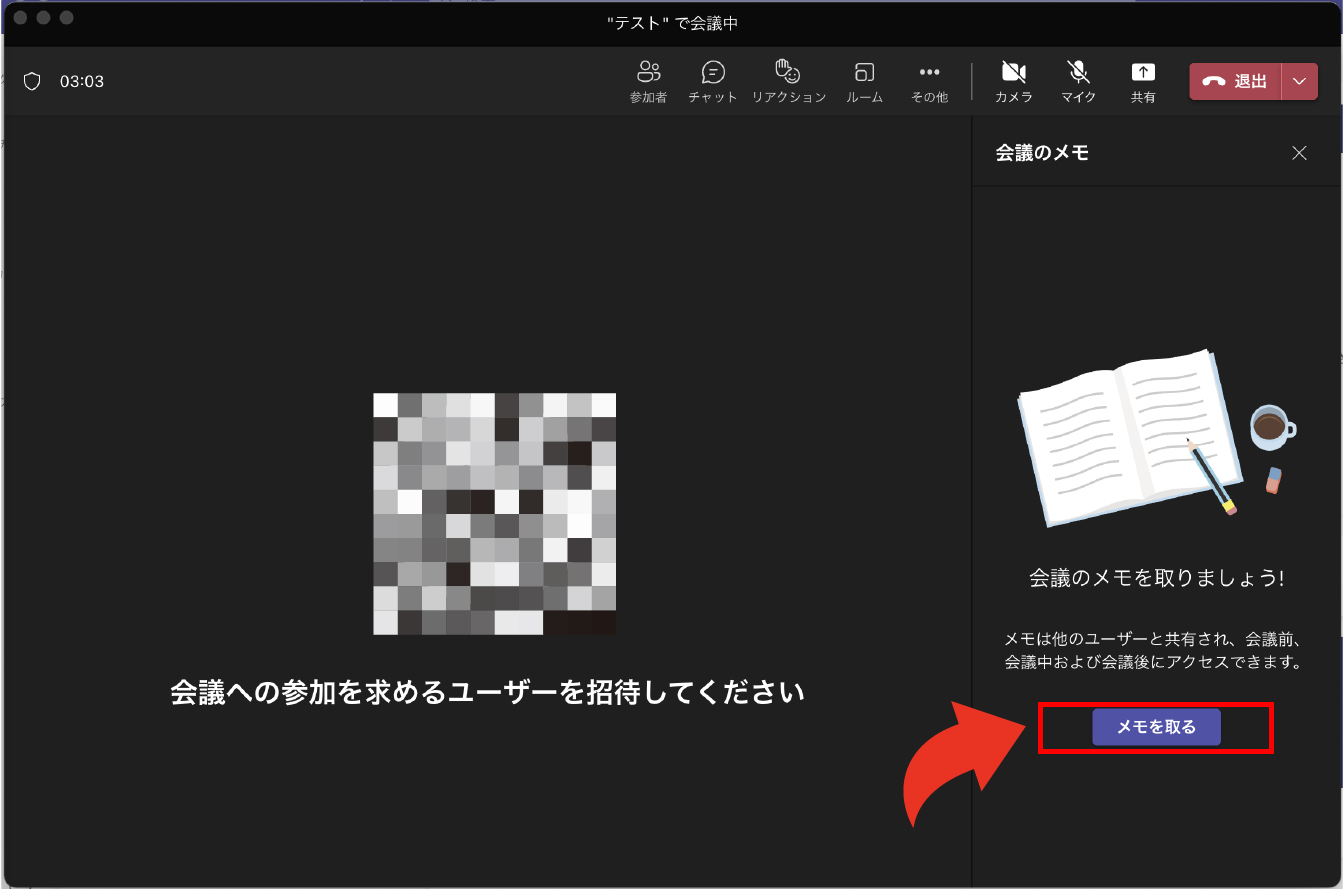 すると、右側に画像のようなウィンドウが表示されるので「メモを取る」をクリックします。