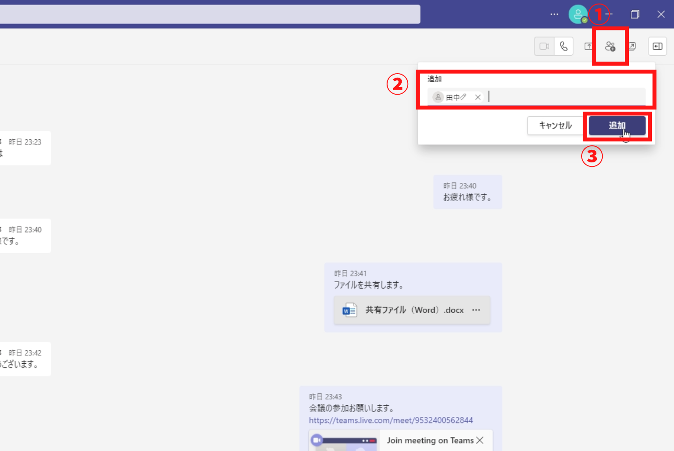 追加したいメンバーのメールアドレスや電話番号を入力して「追加」をクリック。