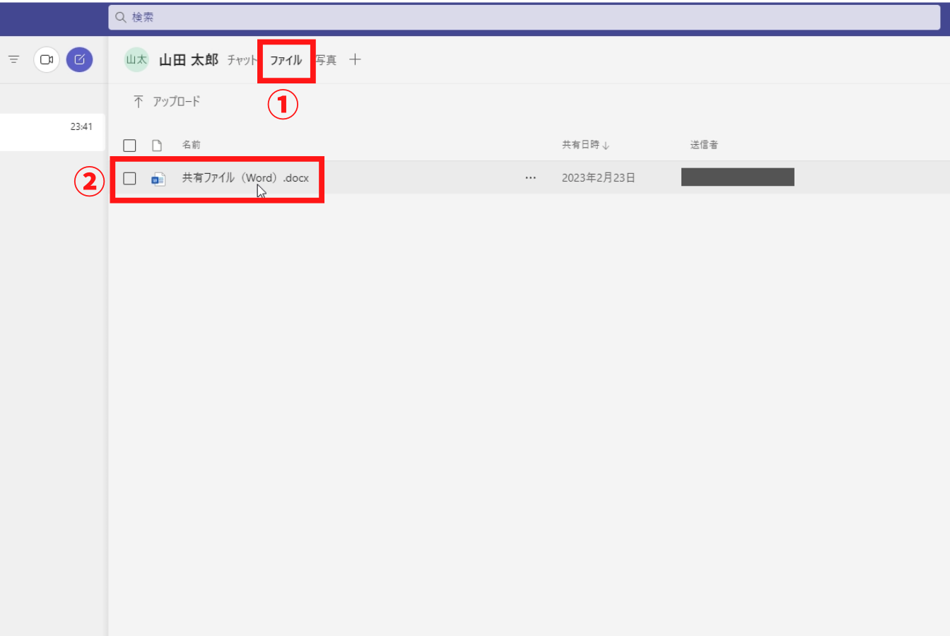 共有したいファイルを「送信」するとチャットにファイルをアップロードできます。