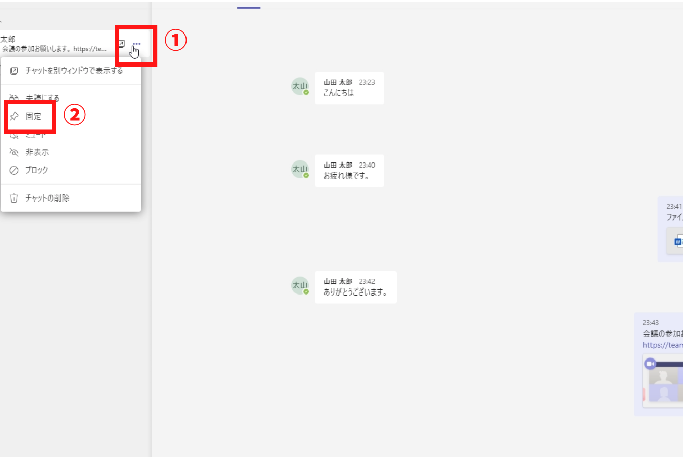 頻繁にメッセージ対応するチャットは「固定」することができます。