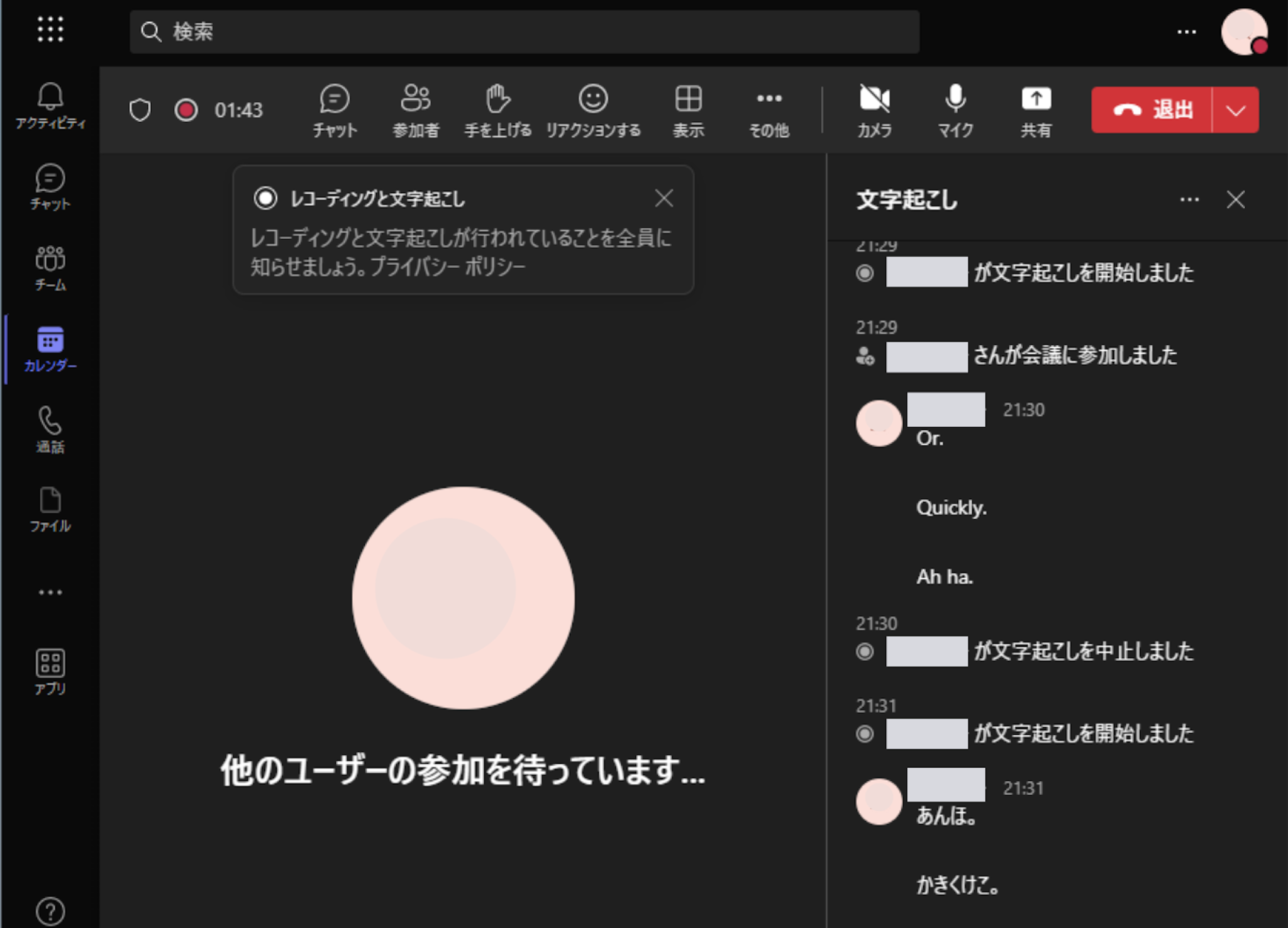 Teamsは、会議の文字起こしや参加者リストを作ってくれます。