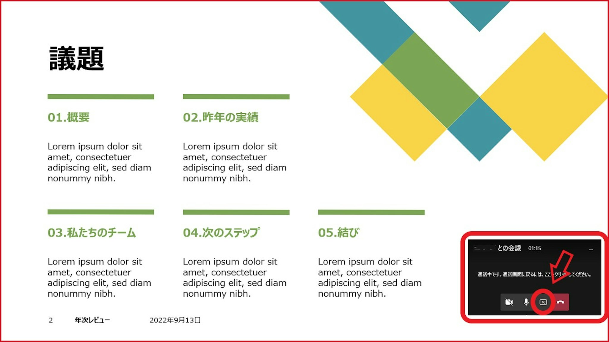 PowerPointのスライドを共有しました。