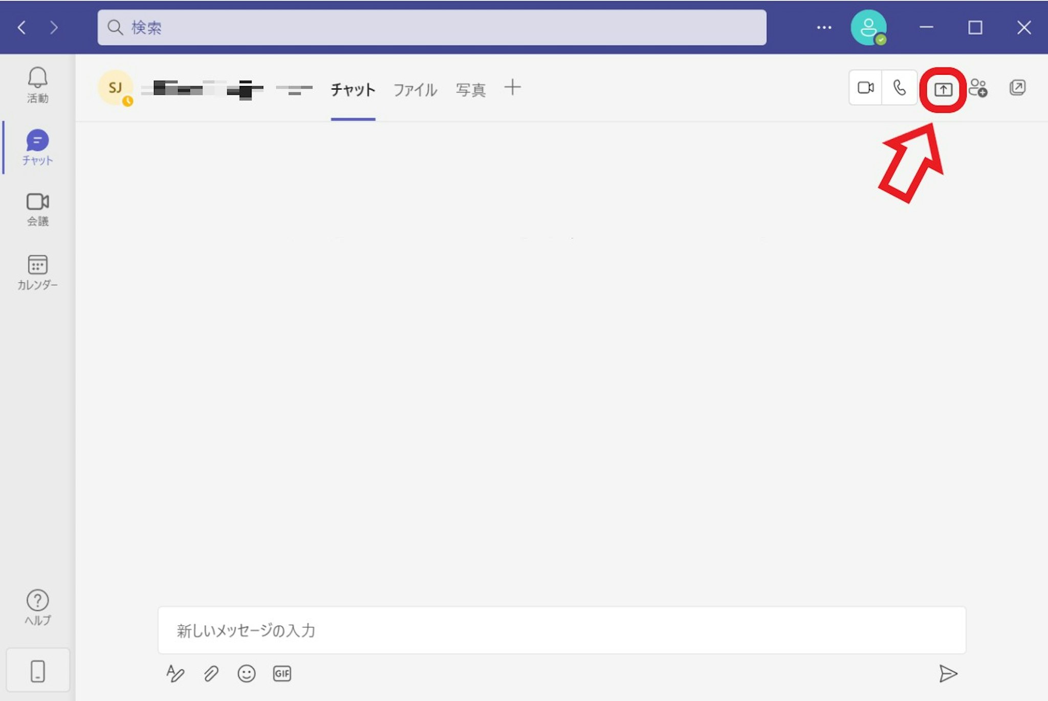 チャット画面の左上にある「画面共有」のアイコンをクリックします。