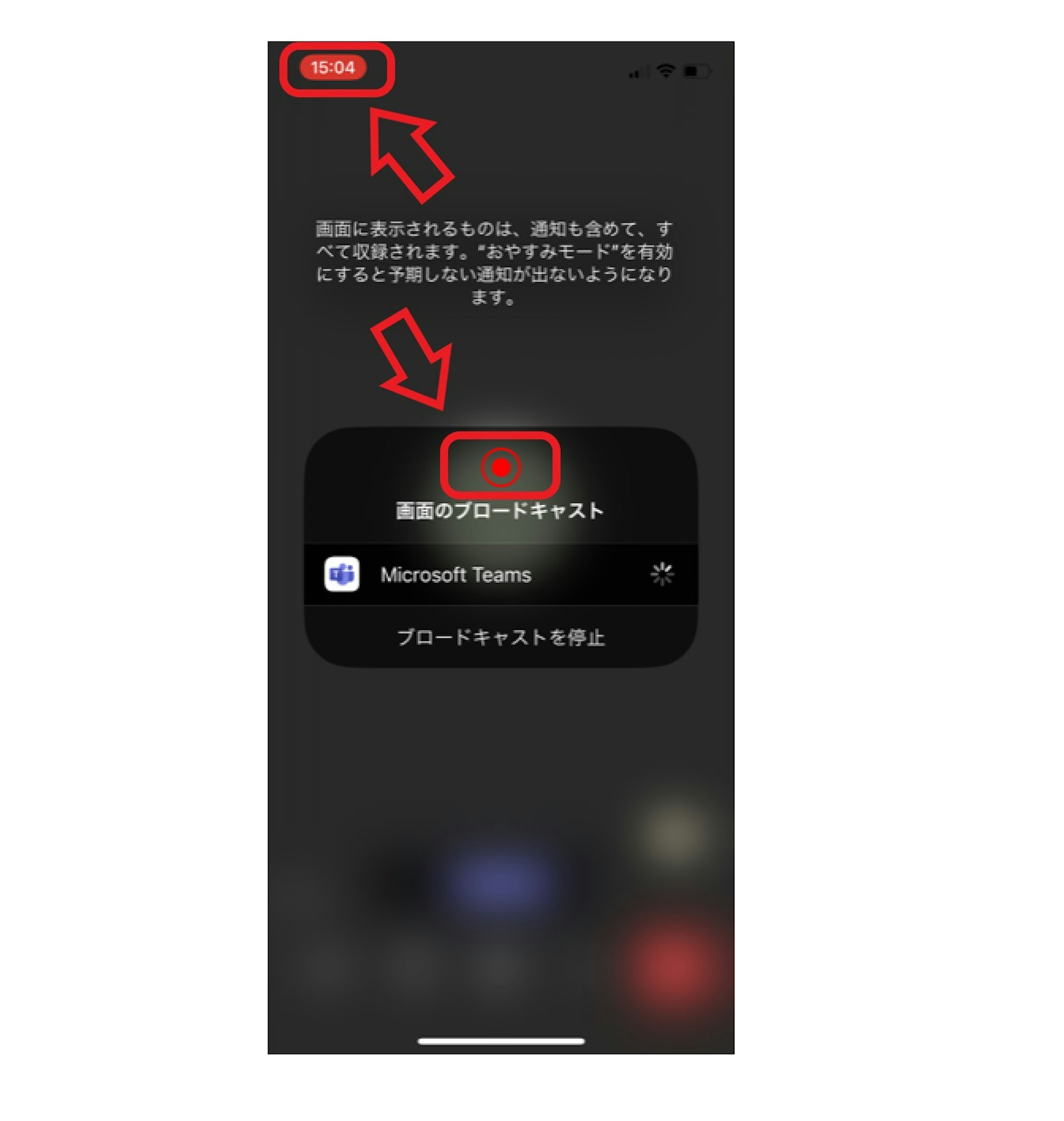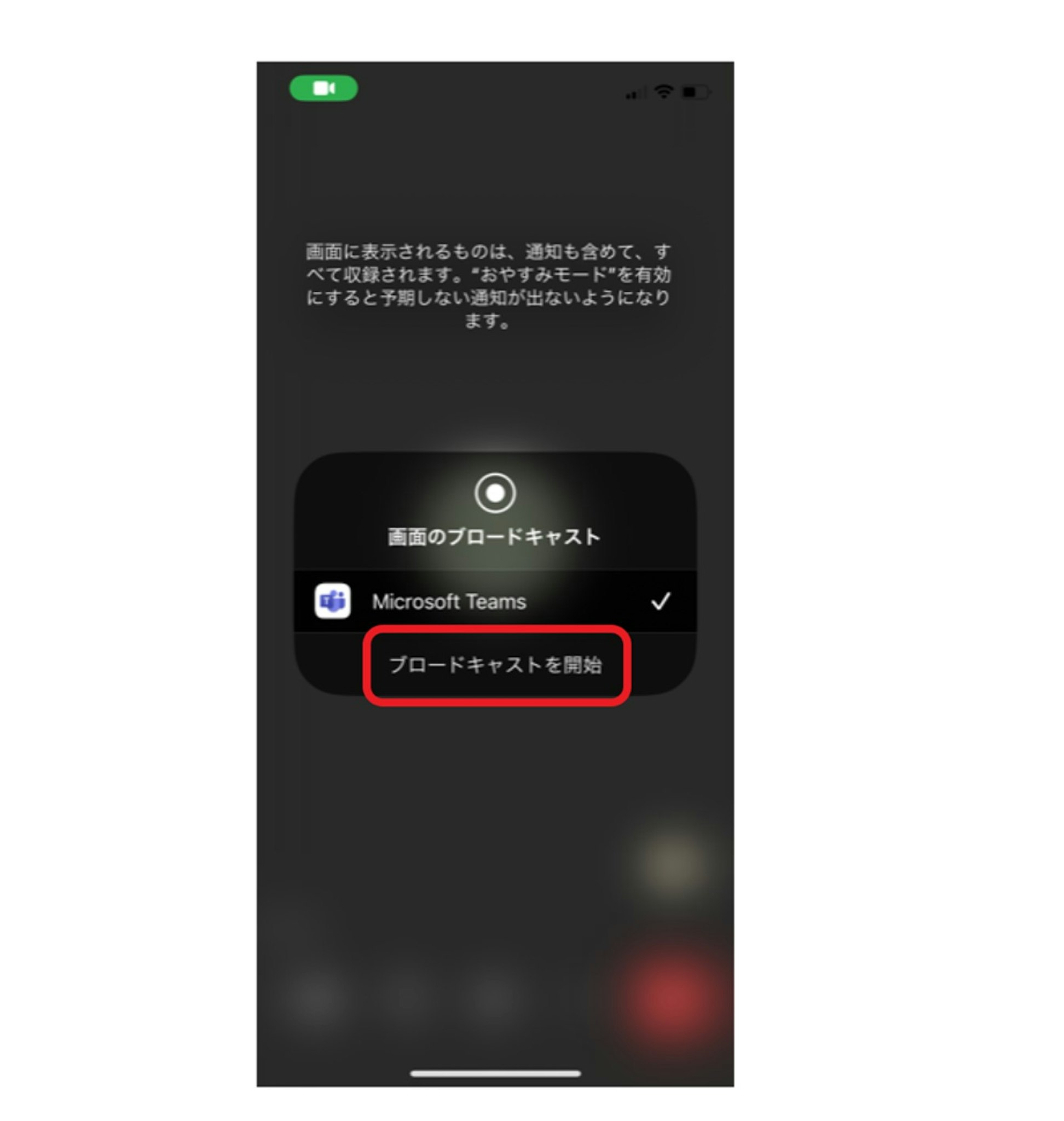 「ブロードキャストを開始」をタップすると3秒のカウントダウン後に画面が共有されます。