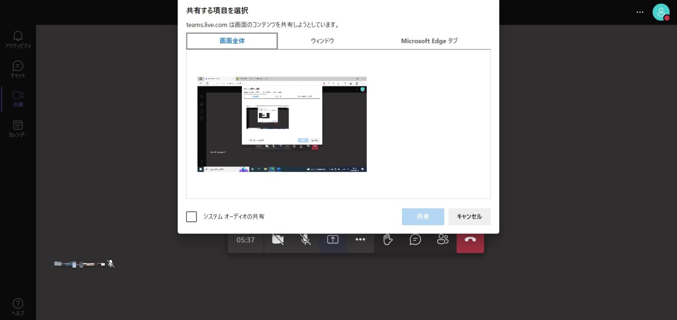 Web版Teamsの画面共有について解説します。