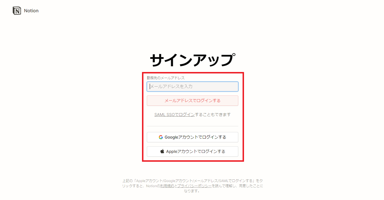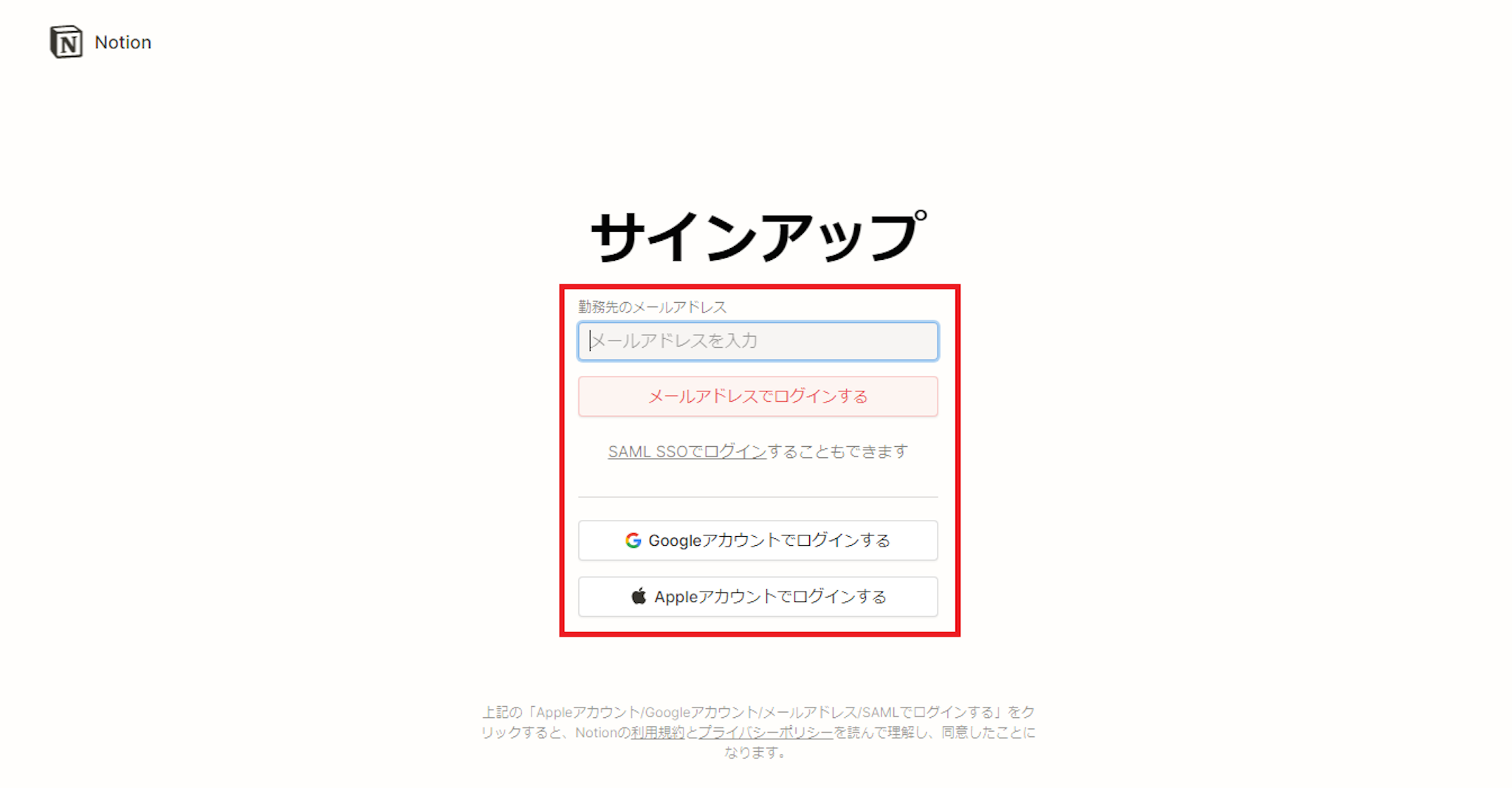 サインアップの方法は「メールアドレス」「Googleアカウント」「Appleアカウント」(Apple ID)いずれかでのログインです。