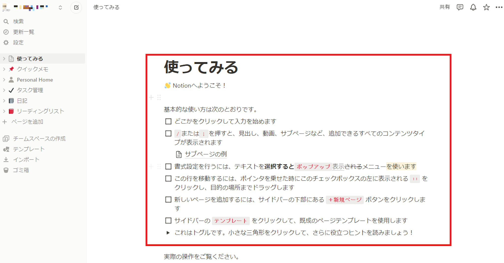 Notionを使い始めたら、まずは自分が使いたい機能を洗い出して実際に作ってみると良いです。例えばToDoリストやスケジュール管理など、自分が日常的に利用する機能から始める方法です。