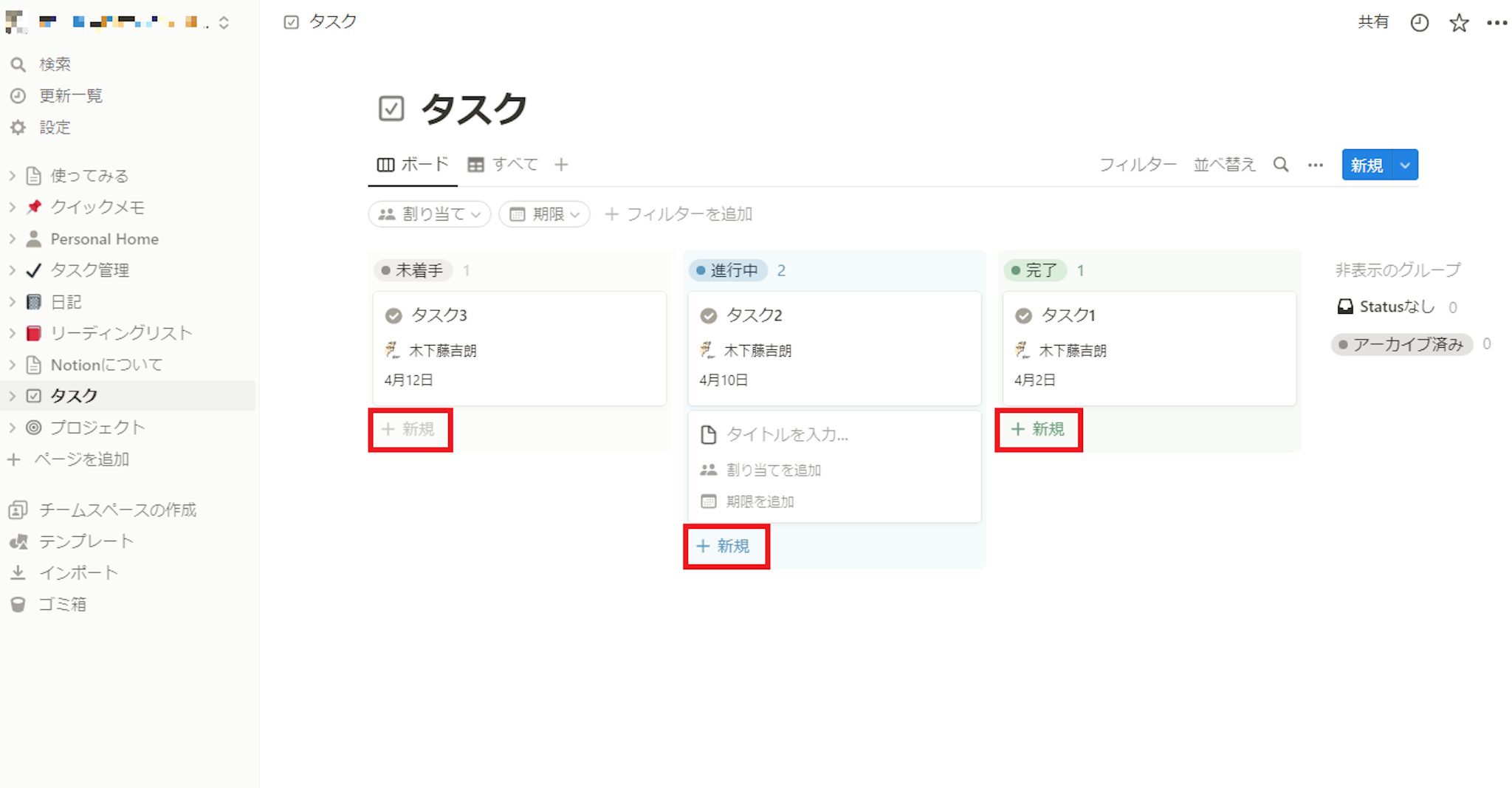 この情報を修正、または「+ 新規」でタスクを追加していくことで、自分のToDoリストとなります。
