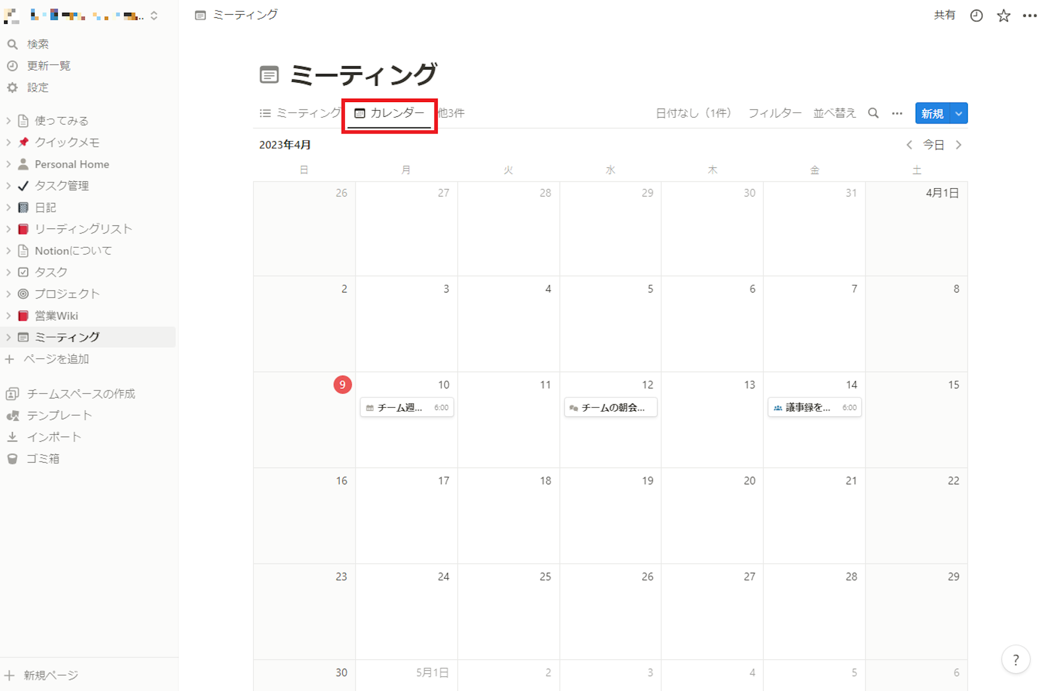 「ミーティング」のテンプレートを利用すればチームスケジュールが簡単に管理できます。