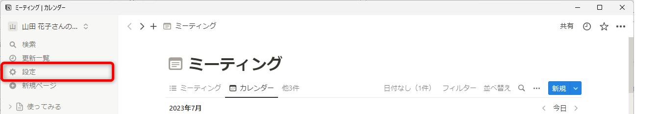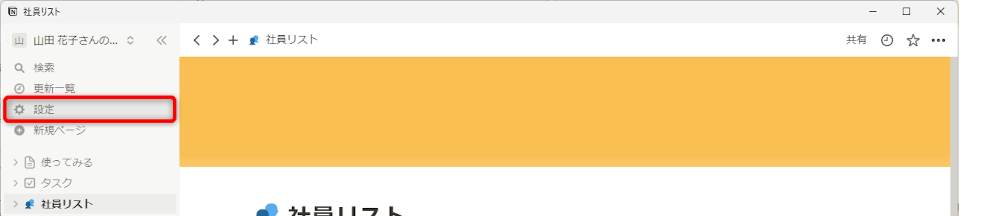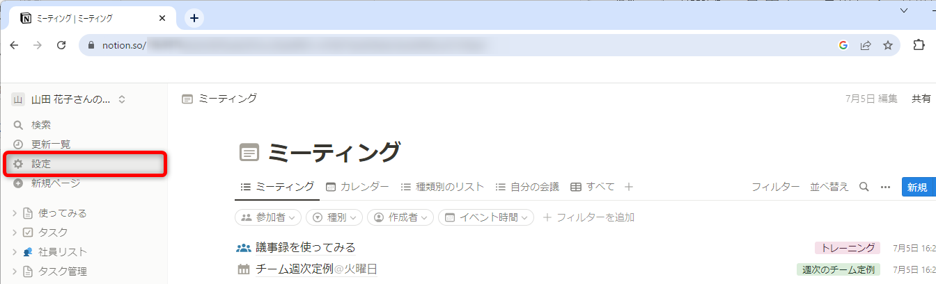 NotionをWebブラウザで開きます。※アプリからは変更操作ができません。