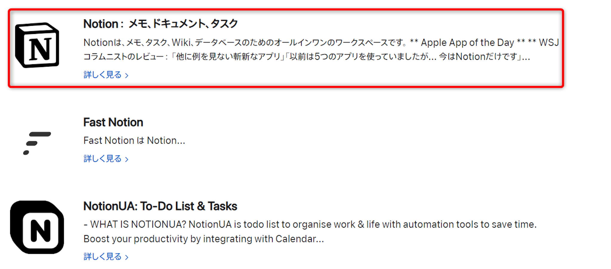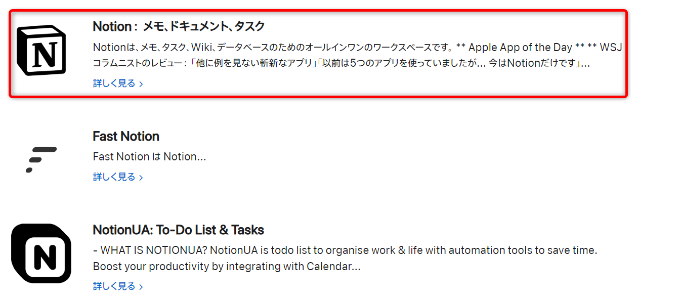 下記のリンクからアクセスするか、App Storeで「Notion」と検索しましょう。