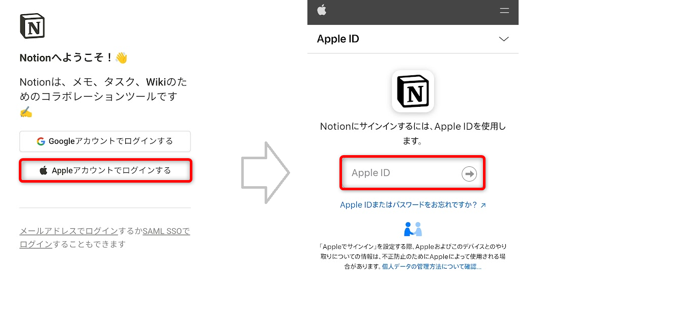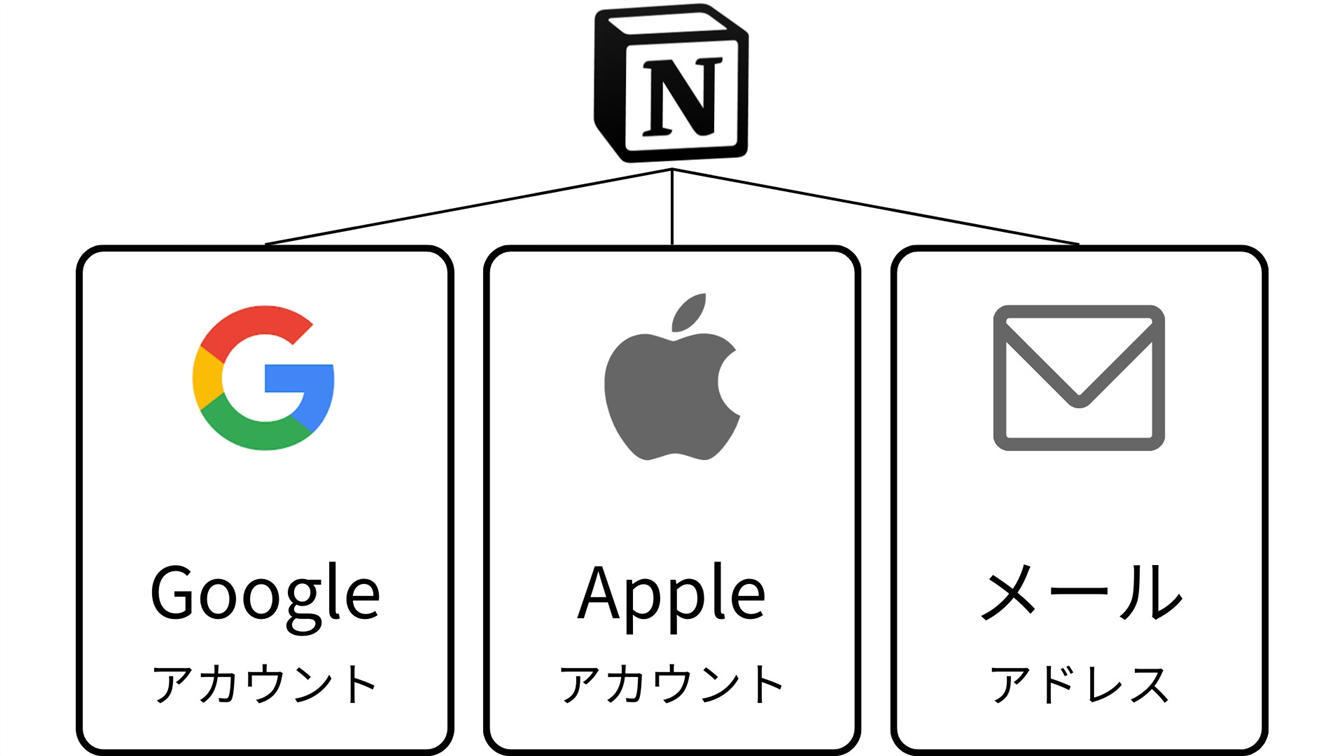 Notionでは、Googleアカウントのほかに、Appleアカウントでもログインできます。