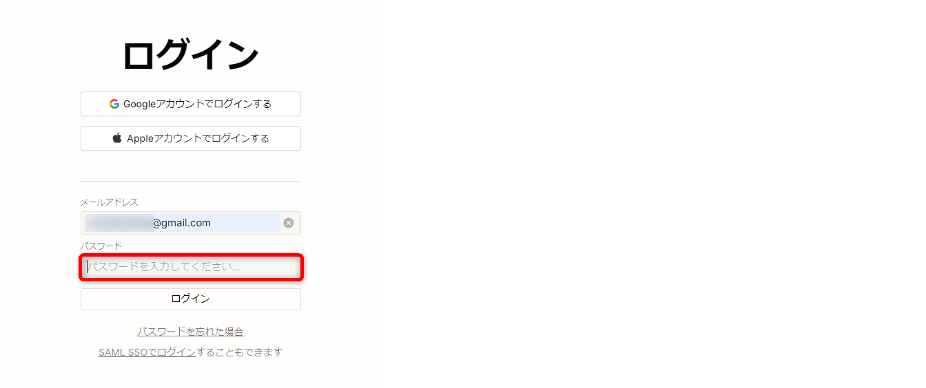 入力できたら、[ログイン(Continue with password)]をクリックしましょう。